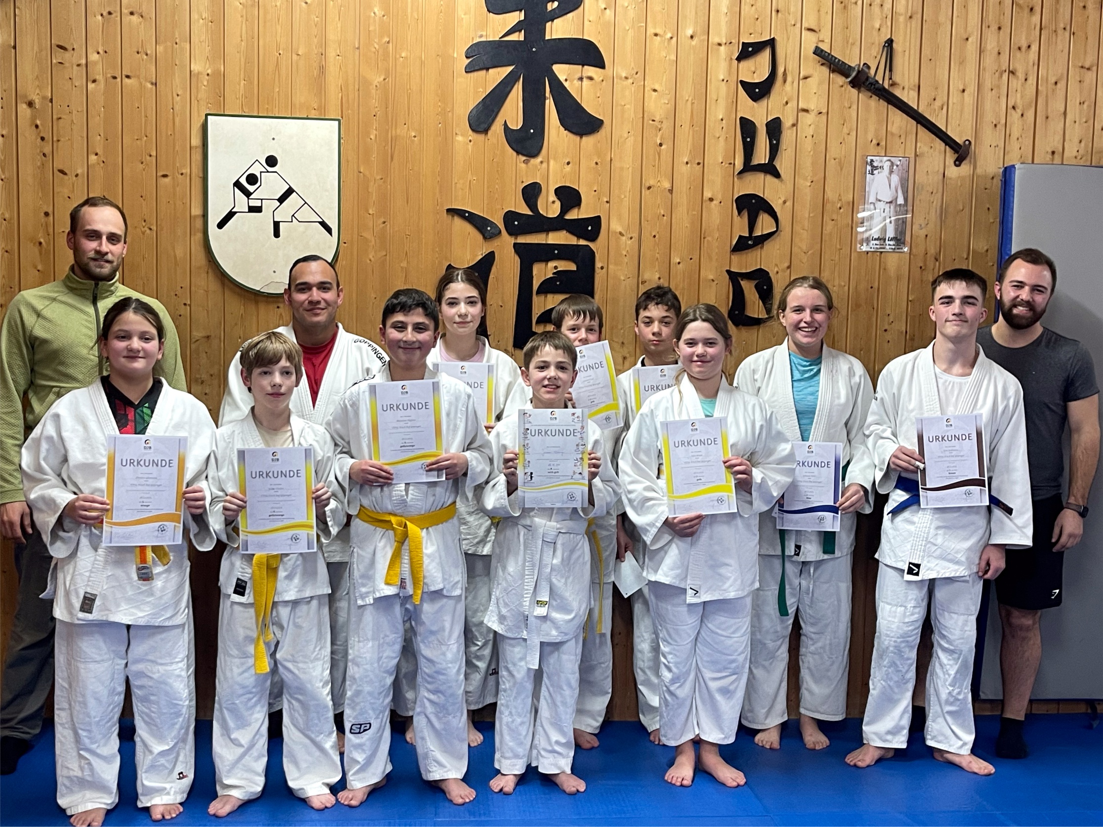 Deniz Vezi, Lennard Feszl und Sofia Braun zum gelben Gürtel.
