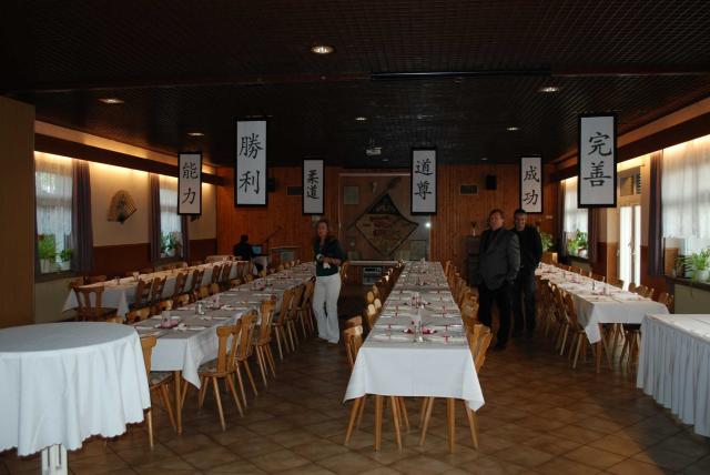 Während des anschließenden heiß erwarteten deutsch-japanischen Büffets, flimmerten historische und auch aktuelle Filme zu beruhigenden Zen-Klängen über die Videoleinwand. Mancher der Anwesenden konnte sich in den Aufnahmen wiederentdecken. Stellwände mit Zeitungsartikeln und Fotos der vergangenen 50 Jahre boten Gelegenheit, im persönlichen Gespräch, bei einem Sake, über alte Zeiten zu debattieren. Erst sehr viel später klang dieser stimmungsvolle Abend bei flotter Musik und Tanz aus und alle waren sich sicher, die nächsten 50 Jahre werden genauso erfolgreich.