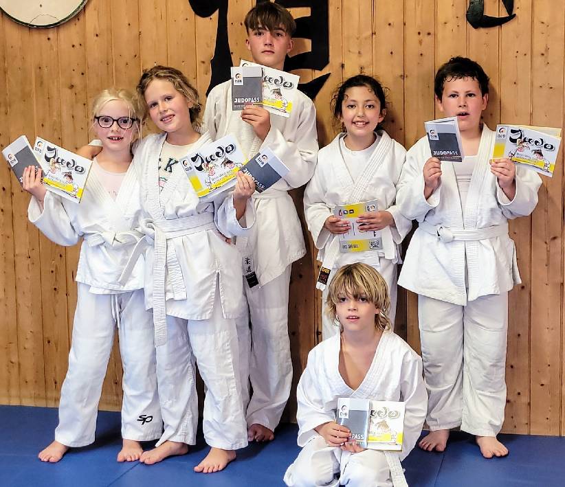 Im letzten Training vor den Großen Ferien haben sechs Nachwuchsjudoka bravourös die Prüfung zum 8. Kyu bestanden. Emilia Jordanova, Boris Allmendinger, Emma Pehl, Tom Gießmann, Rahma Read Ahmad und Carlo Pflugman sind nun stolze Träger des weiß-gelben Gürtels.
