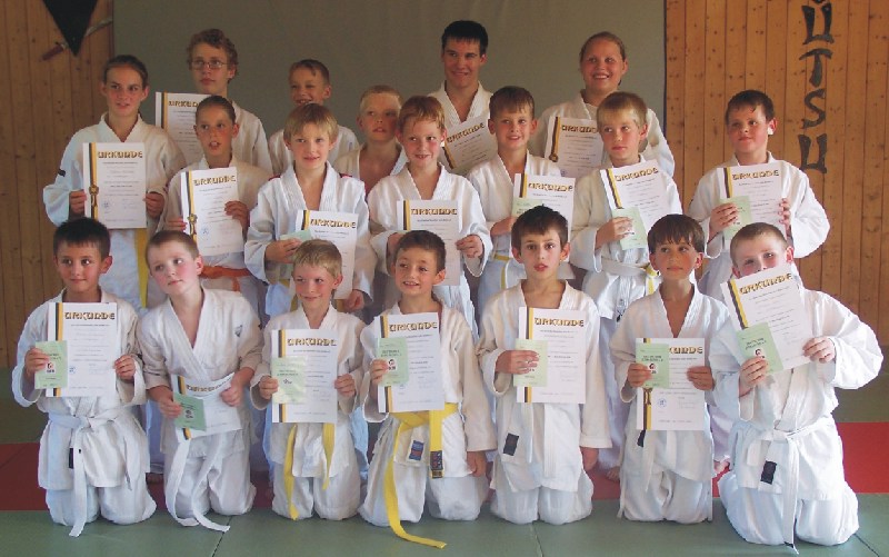 Die Prüfung zum 8.Kyu(weiß/gelb)haben bestanden: Valentin Walz, Peter Walz, Denis Sommer, Florian Thomas u. Tommaso Carlone zum 7.Kyu (gelb): Artur Enders, Rudolff Saragesyan, Lucas Brandenburg und Markus Koschmieder. Zum 6. Kyu (gelb/orange): Philipp Holzner, Lucas Hiller und Markus Hiller. Zum 5.Kyu (orange): Saphira Schreiber und Lars Witte. Zum 4. Kyu (orange/grün): Armin Wiesmüller und Lena Kühnrich. Zum 3. Kyu (grün): Sandra Stegmaier