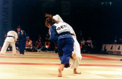 Dieser Wurf ist vergleichbar mit O-Soto-Gari , nur diesmal ist der fegende Fuß der linke und nicht der rechte.