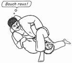 Mit dem Bauch oder der Körpervorderseite hebeln.