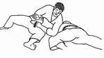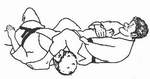 Den zwischen den Beinen befindlichen Arm über die Leiste hebeln
