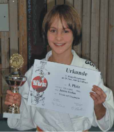 Bei den Mädchen startete die erst 9-jährige Janine Godon im Gewichtslimit bis 30 kg. Mit unbändigem