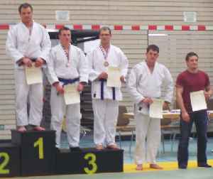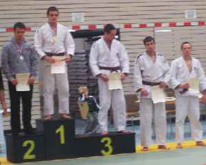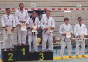 3. Platz für Simon Scholl in der Klasse bis 90 kg Er besiegte Thomas Wieland vom JC Weingarten nach wenigen Sekunden verlor aber gegen den späteren Goldmedaillengewinner Dominik Pleghaar (TSG Backnang). Auf dem Foto nach als Fünfter, wurde später berichtigt. |