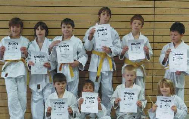 Zehn kleine Frisch Auf Judoka auf dem Siegertreppchen