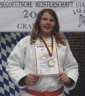 einer Minute Kampfzeit besiegte sie die bayerische Vizemeisterin mit ihrer Spezialtechnik, einem Schulterwurf.