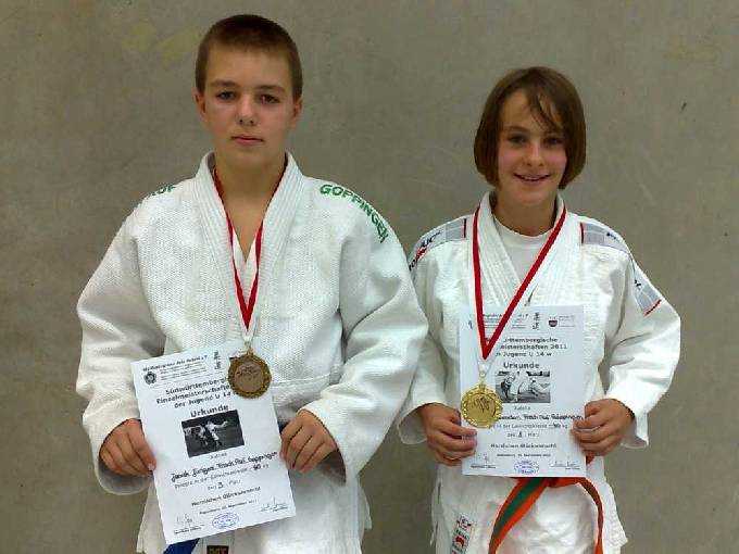Bei den Südwürttembergischen Einzelmeisterschaften der unter 14-jährigen in Rottenburg erkämpfte sich Janine Godon in der Gewichtsklasse bis 40 kg gleich in ihrem ersten Jahr U14 die Golmedaille. Janick Jüngert holte sich in der stark besetzten Klasse bis 60 kg den 3. Platz. Beide sind damit für die Württembergischen Meisterschaften qualifiziert.