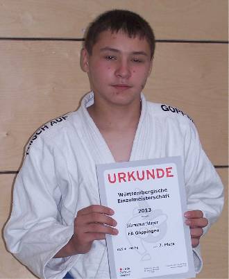 Hermann Mayer in der Gewichtsklasse bis 60 kg wurde nach Freilos in seinem ersten Kampf von seinem Gegner Darius Siebert vom MTV Ludwigsburg schon nach 5 Sekunden kalt erwischt und in die Hoffnungsrunde verwiesen. Jetzt wach besiegte er Justin Vorher von der SS Kustusch im Haltegriff. Da aber die nächste Begegnung unglücklich verloren ging, musste er sich mit Platz 7 begnügen.