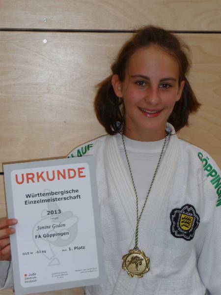 Im Finale traf sie auf die Südwürttembergische Meisterin Leoni Dreher vom TSB Ravensburg. Eine Woche zuvor im Finale der Südwürttembergischen war sie ihr nach Verlängerung noch denkbar knapp unterlegen, und auch diesmal stand nach Ende der Kampfzeit keine Wertung auf der Tafel. Nachdem auch in der Verlängerung von beiden Kämpferinnen keine zählbare Technik durchgesetzt werden konnte, musste am Ende das Kampfgericht entscheiden. Da Janine ihre Gegnerin während des ganzen Kampfes klar dominiert hatte und auch einer Wertung am nächsten kam, fiel die Entscheidung folgerichtig zu ihren Gunsten aus und sie errang damit die Württembergische Meisterschaft.
