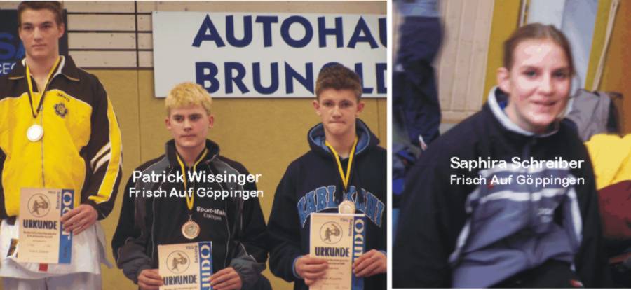 Patrick Wissinger verpasste das Gewichtslimit bis 73 kg und startete deshalb in der offenen Klasse ohne Gewichtsbeschränkung. Auch er musste in seinem ersten Kampf gegen körperlich überlegenen Kirchheimer Kosenko abgeben, besiegte aber anschließend Jan Weber aus Offenburg und Sebastian Weber aus Ilsfeld mit z.T. sehenswerten Techniken. Im Kampf um den Einzug ins Finale hatte er allerdings gegen den Ravensburger Glaser den schwersten Kämpfer im Turnier und verlor diese Begegnung. Glaser gewann auch das Finale und wurde Baden-Württembergischer Meister und Patrick somit Dritter.