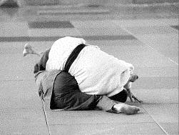 Aufrichten des Partners verhindert. Abb.6 - 8 Tori versucht nun in eine parallele Lage zu Uke zu
